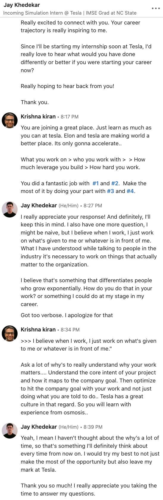 Of course, there is an element of luck. I was free at that time. I am a Tesla and Elon fan boy. But you have to take action to give luck a chance.
